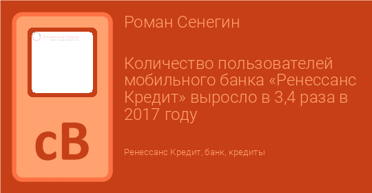 Количество пользователей мобильного банка «Ренессанс Кредит» выросло в 3,4 раза в 2017 году