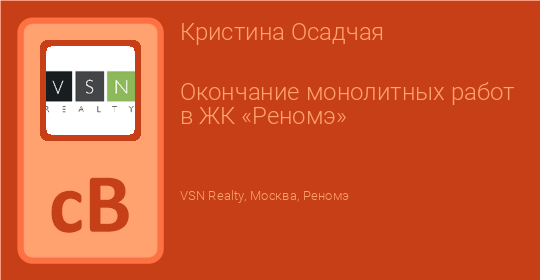 Компания VSN Realty сообщает об окончании монолитных работ в ЖК «Реномэ» и связанном с этим празднике.