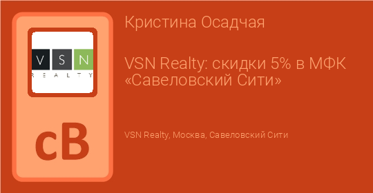 VSN Realty: скидки 5% в МФК «Савеловский Сити»