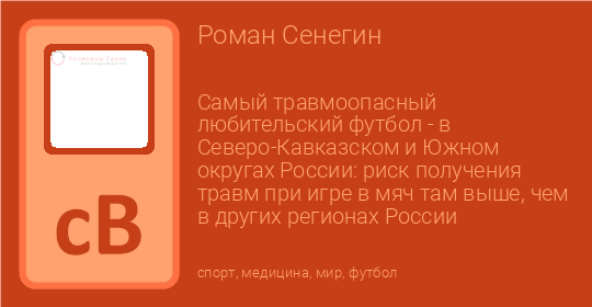 Самый травмоопасный любительский футбол - в Северо-Кавказском и Южном округах России: риск получения травм при игре в мяч там выше, чем в других регионах России