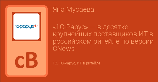 «1С-Рарус» — в десятке крупнейших поставщиков ИТ в российском ритейле по версии CNews