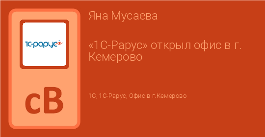 Новосибирский филиал «1С-Рарус» открыл офис «Кемеровский». Новый офис создан для поддержки клиентов в Кемеровской области и помощи бизнесу региона. Офис оказывает услуги по внедрению программ «1С», поставке торгового оборудования, а также разрабатывает заказные информационные системы.