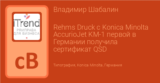 Rehms Druck с Konica Minolta AccurioJet KM-1 первой в Германии получила сертификат QSD