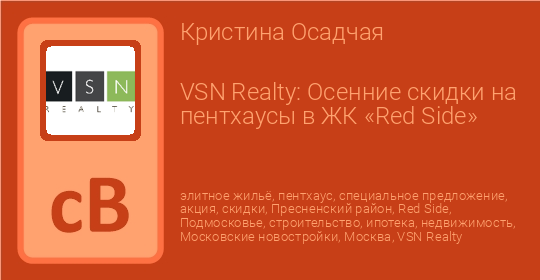 VSN Realty: Осенние скидки на пентхаусы в ЖК «Red Side»