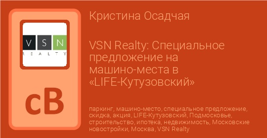 VSN Realty: Специальное предложение на машино-места в «LIFE-Кутузовский»