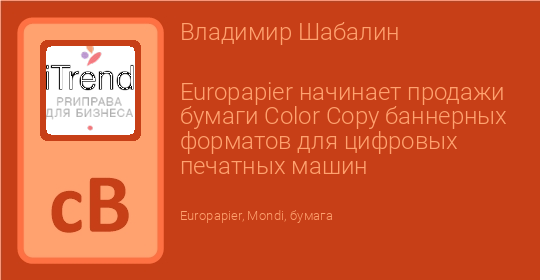Europapier начинает продажи бумаги Color Copy баннерных форматов для цифровых печатных машин