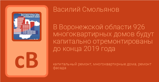 В Воронежской области 926 многоквартирных домов будут капитально отремонтированы до конца 2019 года