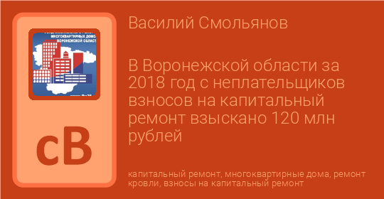 В Воронежской области за 2018 год с неплательщиков взносов на капитальный ремонт взыскано 120 млн рублей
