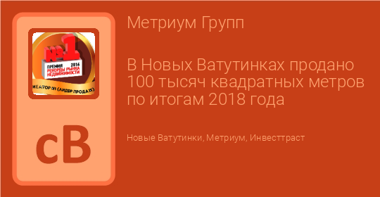 Эксперты компании «Инвесттраст» – девелопера района Новые Ватутинки – подвели итоги 2018 года. Впервые за всю историю реализации годовой объем продаж превысил 100 тысяч квадратных метров. Количество первичных обращений относительно 2017 года увеличилось в полтора раза. Cредняя стоимость квадратного метра также показала положительную динамику на 9%. Партнер по реализации новостройки – компания «Метриум».