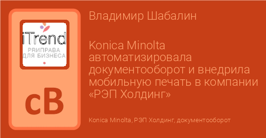 Konica Minolta автоматизировала документооборот и внедрила мобильную печать в компании «РЭП Холдинг»