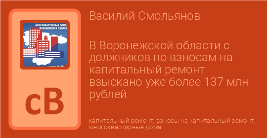 В Воронежской области с должников по взносам на капитальный ремонт взыскано уже более 137 млн рублей