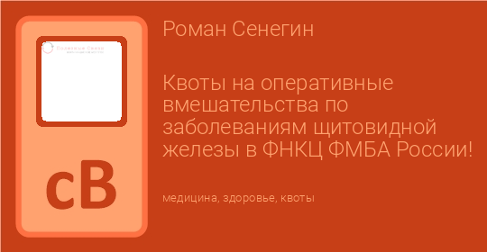 Квоты на оперативные вмешательства по заболеваниям щитовидной железы в ФНКЦ ФМБА России!