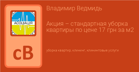 Акция – стандартная уборка квартиры по цене 17 грн за м2