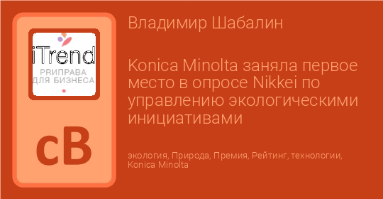 Konica Minolta заняла первое место в опросе Nikkei по управлению экологическими инициативами