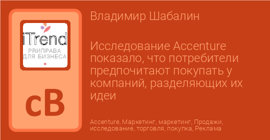 Исследование Accenture показало, что потребители предпочитают покупать у компаний, разделяющих их идеи