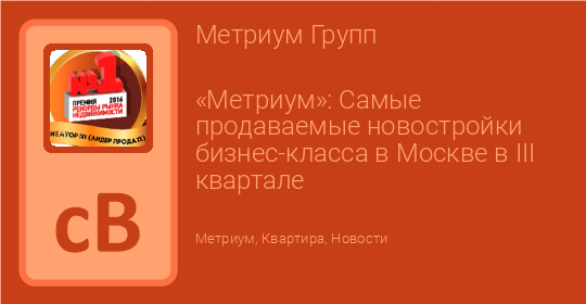 «Метриум»: Самые продаваемые новостройки бизнес-класса в Москве в III квартале