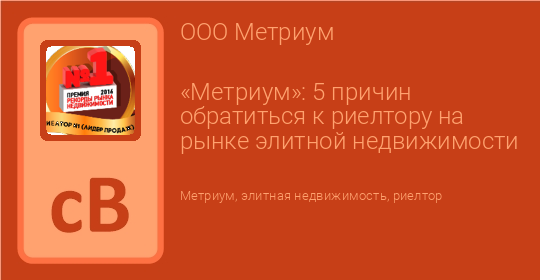 «Метриум»: 5 причин обратиться к риелтору на рынке элитной недвижимости