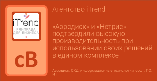 «Аэродиск» и «Нетрис» подтвердили высокую производительность при использовании своих решений в едином комплексе