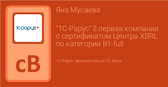 “1С-Рарус” ─ первая компания с сертификатом Центра XBRL по категории B1-full