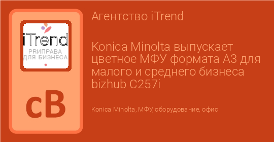 Konica Minolta выпускает цветное МФУ формата А3 для малого и среднего бизнеса bizhub C257i