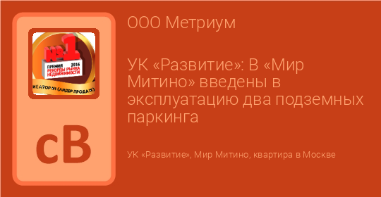 УК «Развитие»: В «Мир Митино» введены в эксплуатацию два подземных паркинга