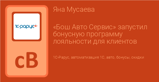 Специалисты «1С-Рарус» помогли «Бош Авто Сервис» в Набережных Челнах реализовать систему скидок и бонусов для клиентов. Проект был успешно внедрен за 181 час и показал хорошие результаты: бонусная программа стимулирует постоянных клиентов на покупки и привлекает новых. Благодаря привязке нескольких акций к одной карте посетители получают разнообразные бонусы от покупок.