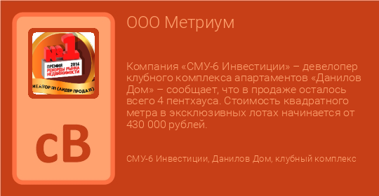 СМУ-6 Инвестиции Данилов Дом клубный комплекс Данилов дом Любовь и Голуби Метриум Квартира в Москве новостройка от застройщика квартира в новостройке Перлин Любовь и голуби Квартира от застройщика Urban Awards