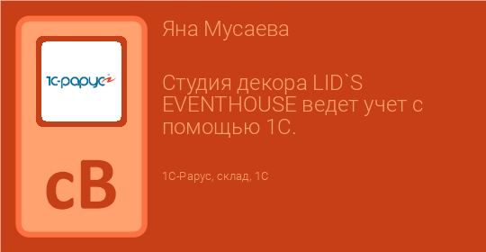 Студия декора LID`S EVENTHOUSE ведет учет с помощью 1С.