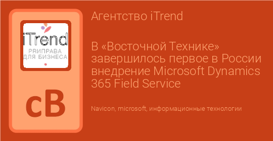В «Восточной Технике» завершилось первое в России внедрение Microsoft Dynamics 365 Field Service
