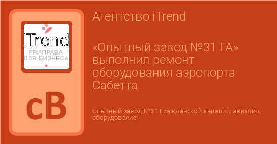 «Опытный завод №31 ГА» выполнил ремонт оборудования аэропорта Сабетта