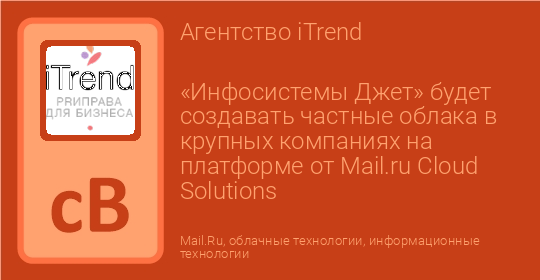 «Инфосистемы Джет» будет создавать частные облака в крупных компаниях на платформе от Mail.ru Cloud Solutions
