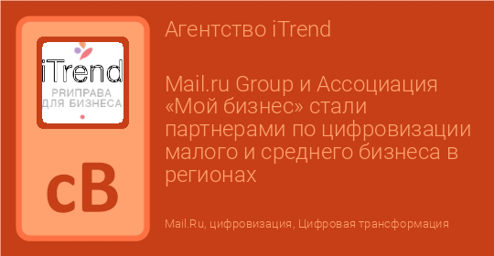 Mail.ru Group и Ассоциация «Мой бизнес» стали партнерами по цифровизации малого и среднего бизнеса в регионах