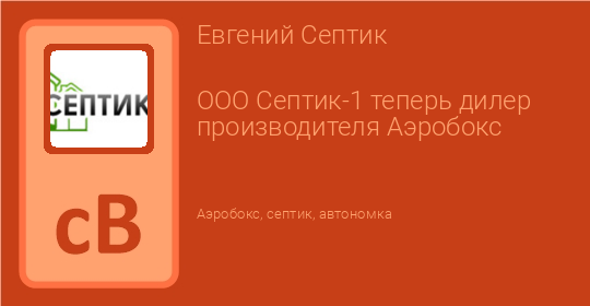 ООО Септик-1 теперь дилер производителя Аэробокс