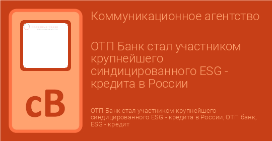 ОТП Банк стал участником крупнейшего синдицированного ESG - кредита в России