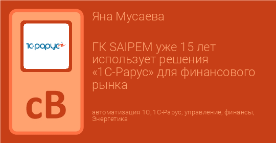 ГК SAIPEM уже 15 лет использует решения «1С‑Рарус» для финансового рынка