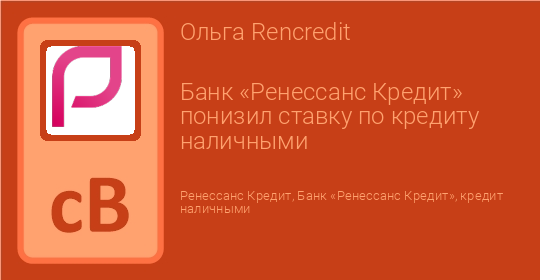 Банк «Ренессанс Кредит» понизил ставку по кредиту наличными