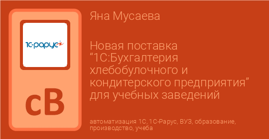 Новая поставка “1С:Бухгалтерия хлебобулочного и кондитерского предприятия” для учебных заведений