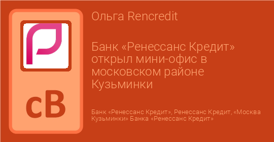 Банк «Ренессанс Кредит» открыл мини-офис в московском районе Кузьминки