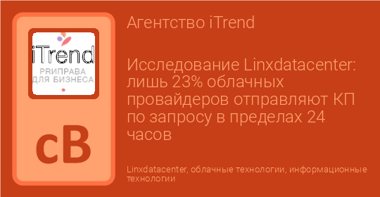 Исследование Linxdatacenter: лишь 23% облачных провайдеров отправляют КП по запросу в пределах 24 часов