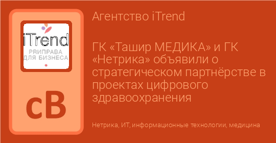 ГК «Ташир МЕДИКА» и ГК «Нетрика» объявили о стратегическом партнёрстве в проектах цифрового здравоохранения