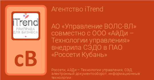 АО «Управление ВОЛС-ВЛ» совместно с ООО «АйДи – Технологии управления» внедрила СЭДО в ПАО «Россети Кубань»