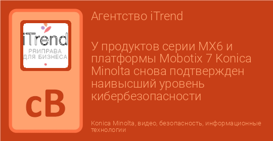 У продуктов серии MX6 и платформы Mobotix 7 Konica Minolta снова подтвержден наивысший уровень кибербезопасности