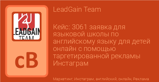 Кейс: 3061 заявка для языковой школы по английскому языку для детей онлайн с помощью таргетированной рекламы Инстаграм