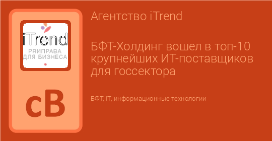 БФТ-Холдинг вошел в топ-10 крупнейших ИТ-поставщиков для госсектора