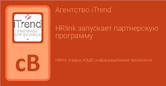 Разработчик системы электронного кадрового документооборота HRlink объявляет о запуске партнерской программы. Она позволит отечественным компаниям и частным специалистам в сфере HR совместными усилиями развивать рынок безбумажного кадрового делопроизводства в России. Благодаря партнерской программе HRlink также планирует увеличить продажи на 30%.