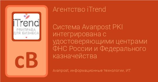 Система Avanpost PKI интегрирована с удостоверяющими центрами ФНС России и Федерального казначейства