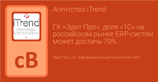 ГК «Эдит Про»: доля «1С» на российском рынке ERP-систем может достичь 70%