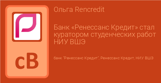 Банк «Ренессанс Кредит» стал куратором студенческих работ НИУ ВШЭ