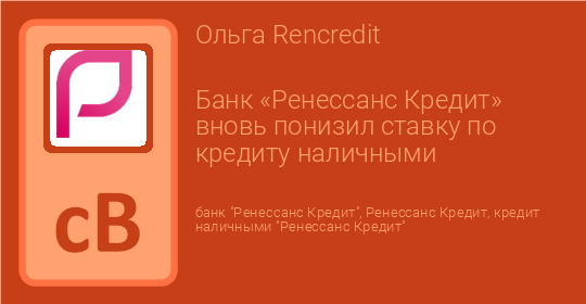 Банк «Ренессанс Кредит» вновь понизил ставку по кредиту наличными
