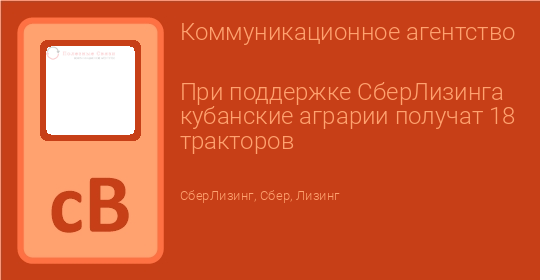 СберЛизинг победил в аукционе на поставку 18-ти тракторов Всероссийскому научно-исследовательскому институту масличных культур имени В.С. Пустовойта. Сумма сделки составила 77 млн рублей. Поставляемая в рамках контракта техника позволит увеличить объемы производства на Кубани товарной и семенной сельскохозяйственной продукции.